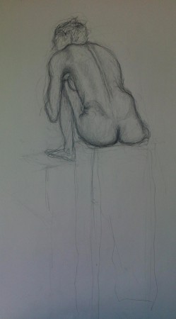 Desenho de movimento, contorno e modelação com lápis de grafite, lápis de carvão, barra litográfica e lápis conté branco