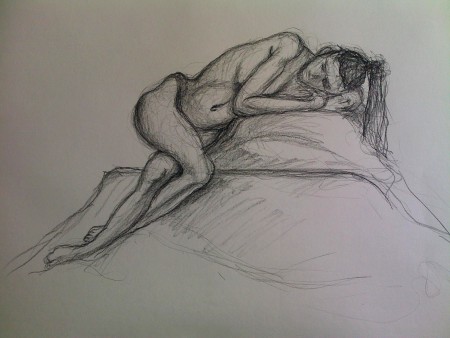 Desenho de movimento, contorno e modelação com lápis de grafite, lápis de carvão, barra litográfica e lápis conté branco